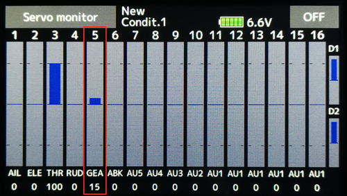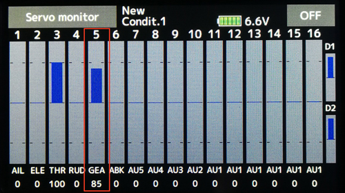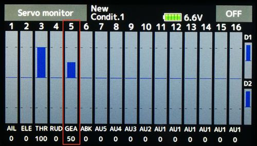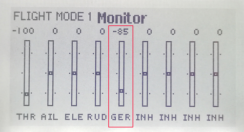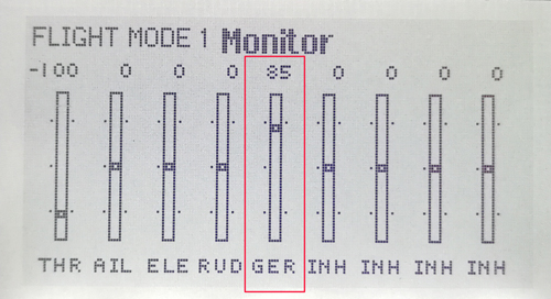 In order to achieve a 6-position switch, programmable mixing functions should be supported by your radio system. A common approach is to apply mixings on a 2-position switch (e.g. SwA) and a 3-position switch (e.g. SwB) and get 6 different position outputs on a certain channel (e.g. Gear or Flap). To make A3S3 read 6 states from the signal correctly, the pulse length of the output signal must meet the requirement of range in the following figure. In our examples, the ±85%, ±50%, ±15% of the servo travel are chosen as the set points. The result will be when SwA is in the [0] position, the output will change between -85%, -50% and -15% when you switch between the three positions of SwB, and when SwA is in the [1] position , the output will change between +15%, +50% and +85% when you switch between the three positions of SwB, as shown below.