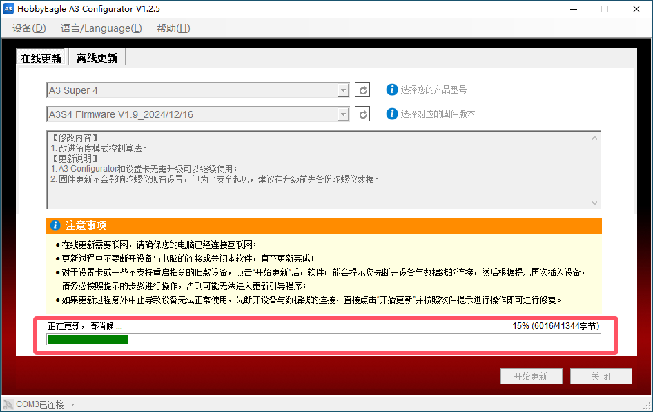 更新开始,请等待更新结束,期间不要断开设备与电脑的连接: